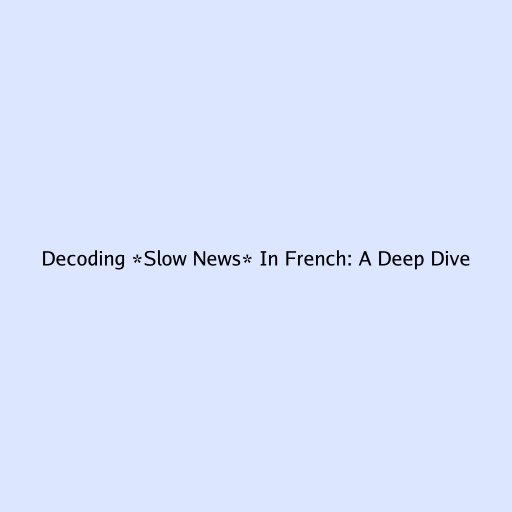 Decoding *Slow News* In French: A Deep Dive